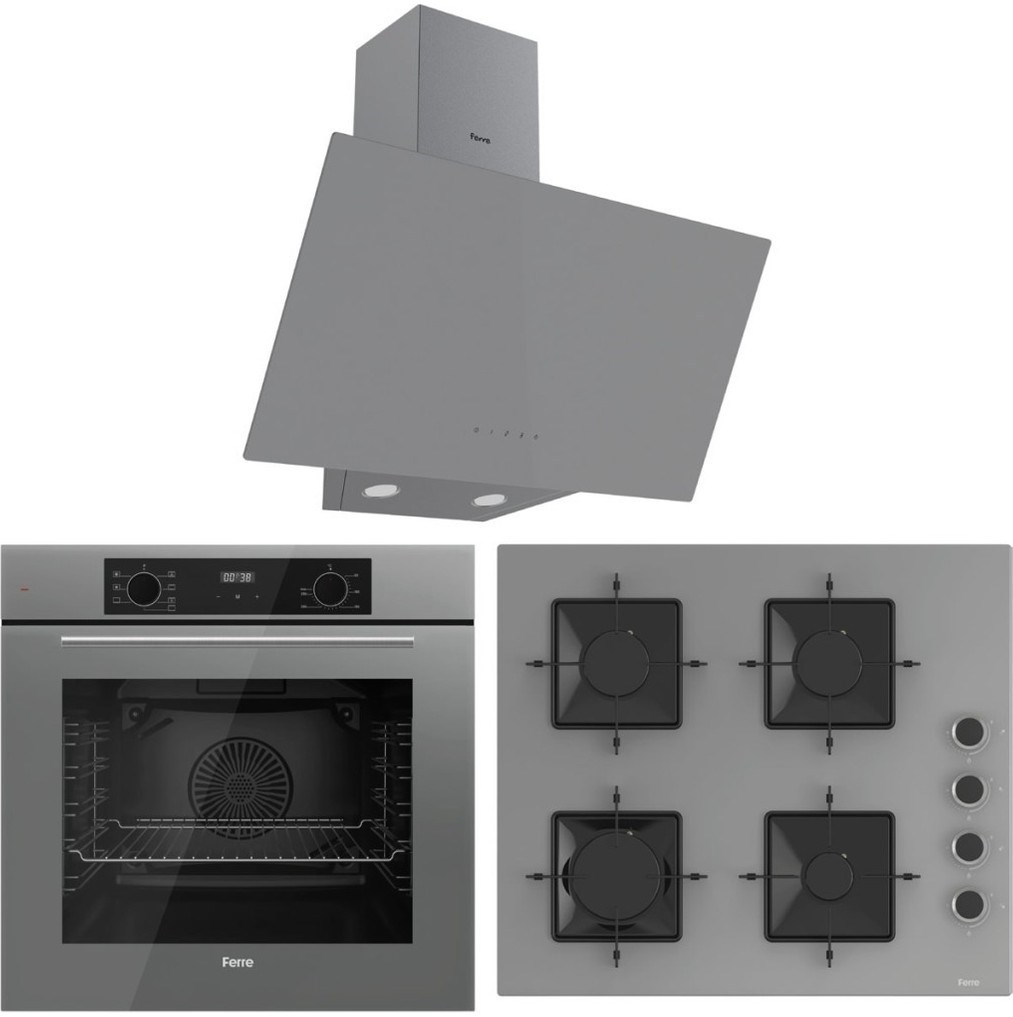 Ferre Flowart QBL63CPR-SS208-D079 7 Prog. Dijital Turbo Ankastre Set - Gri
