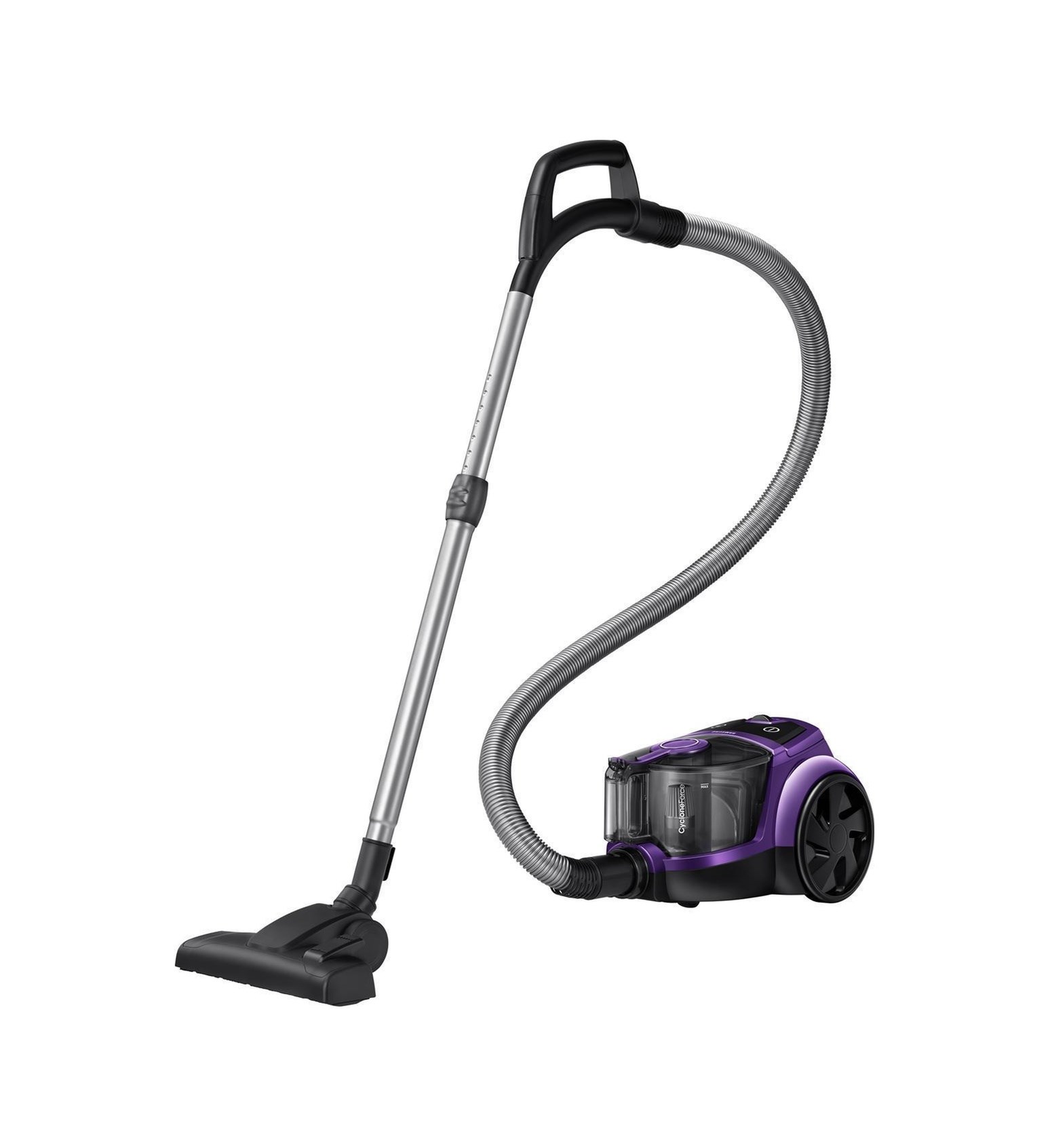 Konforlu kullanım avantajı sunan özel tasarımıyla dikkat çeken Samsung VC07R302MVP Toz Torbasız Elektrikli Süpürge, tüm ihtiyaçlarınızı karşılayan gelişmiş özellikleri ile doğru seçim olduğunu gösteriyor. 750 watt maksimum güç tüketimiyle her bir toz tanesini kolaylıkla içine hapseden elektrikli süpürge, dikkat çeken mor rengi ile estetik görünümünü gözler önüne seriyor. 2,5 litre toz haznesine sahip olan ürün, kompakt boyutlarıyla küçük alanlarda da saklanabiliyor.