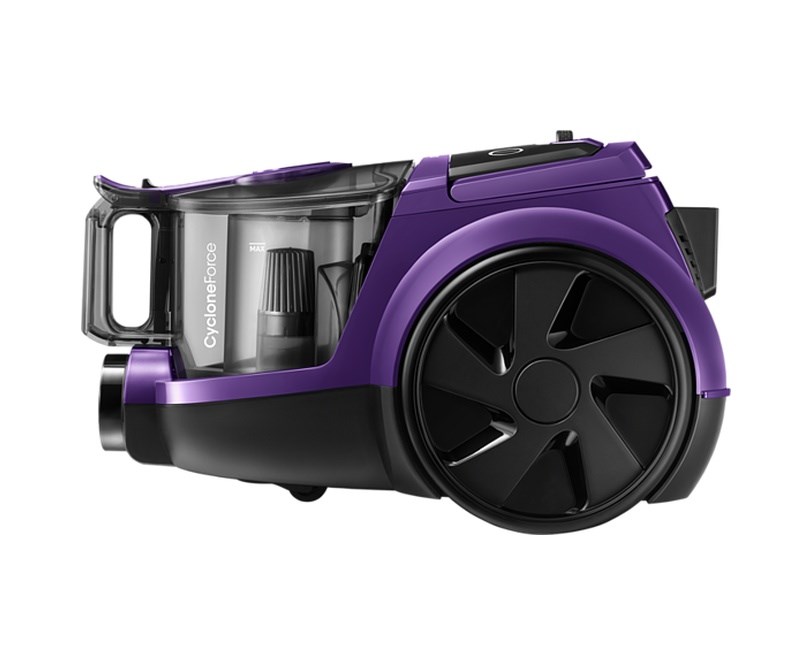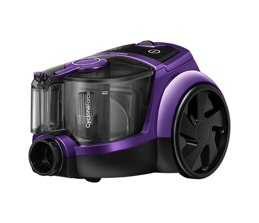 Yüksek emiş gücü sayesinde etkin temizlik avantajı sunan Samsung VC07R302MVP süpürge, CycloneForce sistemi sayesinde filtrenin temiz kalmasını sağlıyor.