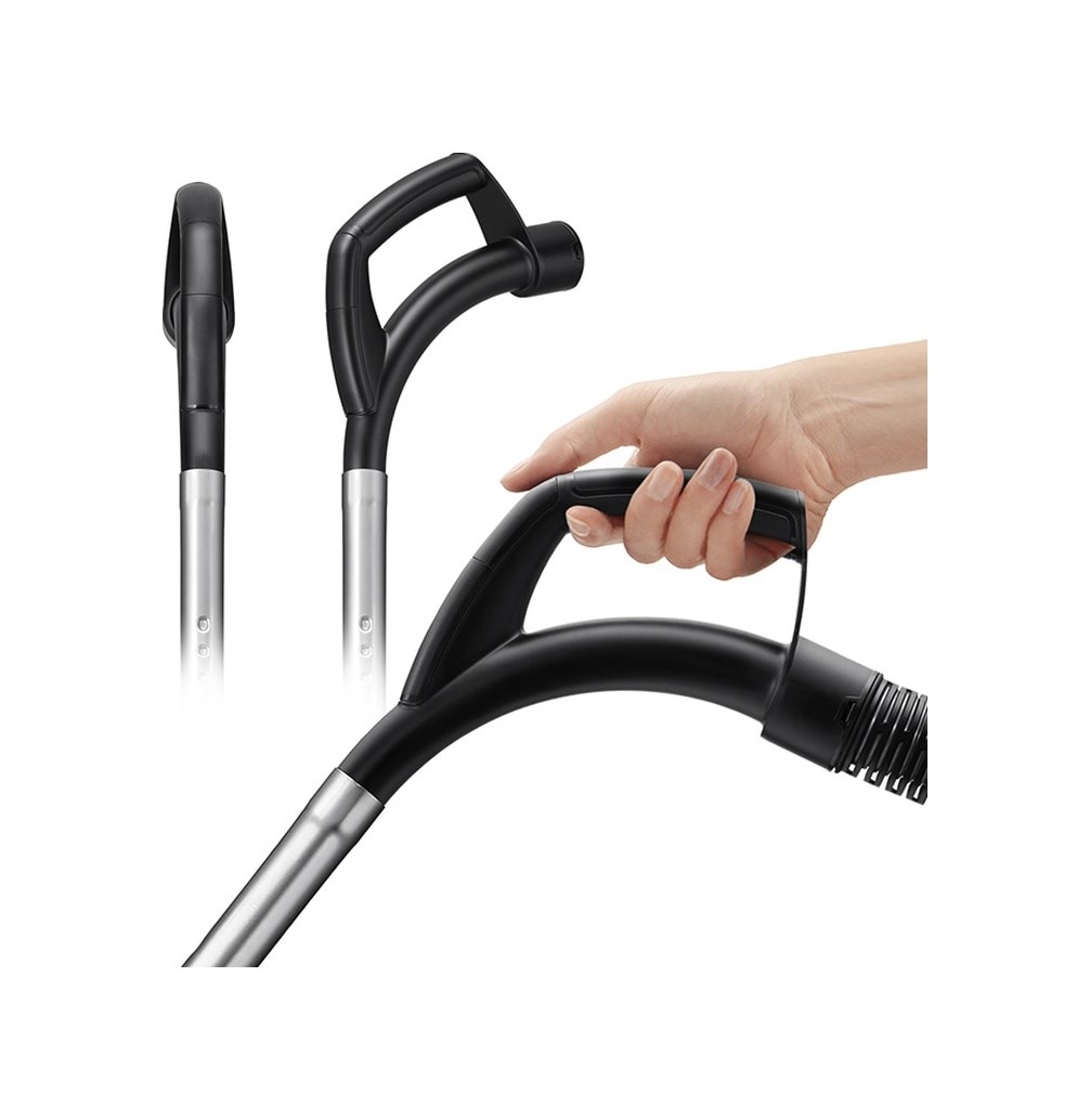 Ellerinizin yorulmaması için elektrik süpürgesini rahatça ve kolayca tutmanızı sağlar. Ergonomik tasarımlı, kaydırmaz kolay kavranır sap, ideal çevre boyutu ve açısıyla hortumu sıkı ve rahatça kavramanızı sağlar. Eklem yeri döndüğü için, borunun takılmasından endişe etmeniz gerekmez.